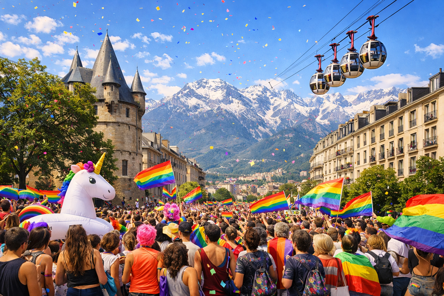 Grenoble gehört zu den stimmungsvollsten Pride-Events in den französischen Alpen. Vor der beeindruckenden Bergkulisse verbindet die Veranstaltung politische Sichtbarkeit mit einer offenen, entspannten Festivalatmosphäre.